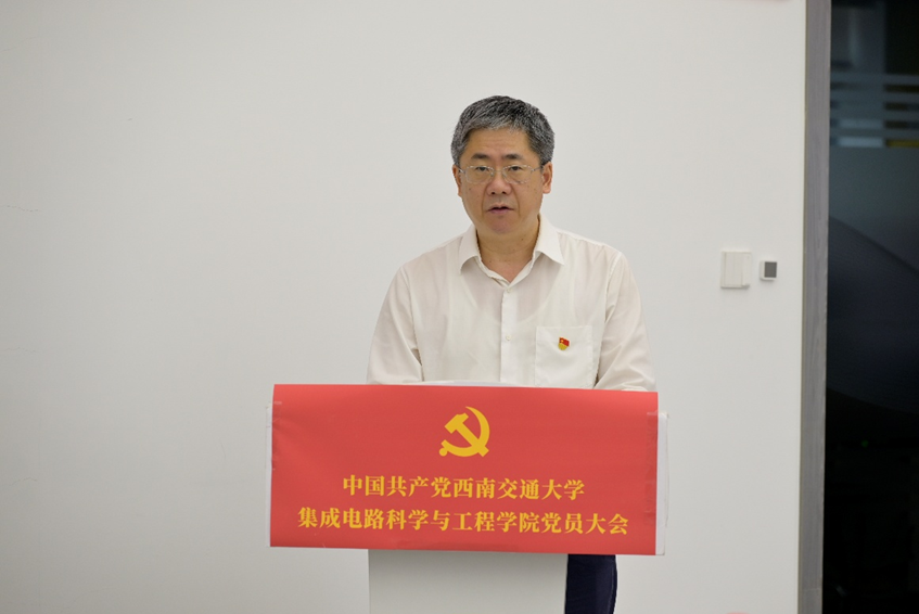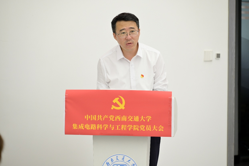 康国政对大会的召开表示热烈祝贺,充分肯定了学院党委的工作成绩,对全体党员提出几点希望:一是希望各位党员同志持之以恒用习近平新时代中国特色社会主义思想凝心铸魂,持续强化理论武装;二是希望学院新一届党委班子进一步提高政治站位,强化担当作为;三是希望学院牢牢把握国家集成电路产业发展机遇,积极响应国家集成电路产业发展战略需求,聚焦关键核心技术攻坚,依托国家级现代产业学院平台,深化与中车株洲所的产学研协同创新,为推动我国从集成电路大国迈向集成电路强国贡献力量。