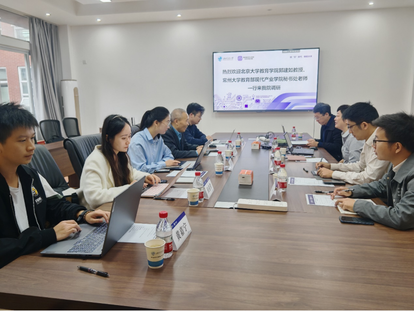 10月14日上午,北京大学教育学院郭建如教授团队及常州大学教育部现代产业学院秘书处肖晨曦、徐彬焜等一行来我院调研现代产业学院建设工作。学院执行院长郝莉、副院长邸志雄及专任教师代表刘东、陈健参加本次调研座谈会。