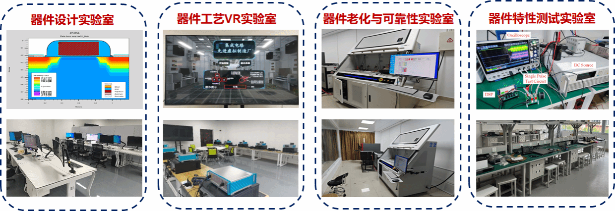 学院与企业已建设多个实验平台,学院建有功率半导体器件设计实验室、器件工艺VR实验室、器件老化与可靠性实验室、器件特性测试实验室等4个实验室,以及功率半导体器件可靠性、宽禁带器件驱动与应用等2个科研实验室,并建立学生科创中心,用于支撑实验教学和学术研究。目前正在建设器件工艺实验室与器件封装实验室,以满足器件设计→器件工艺→器件封装→器件测试”一体化布局。